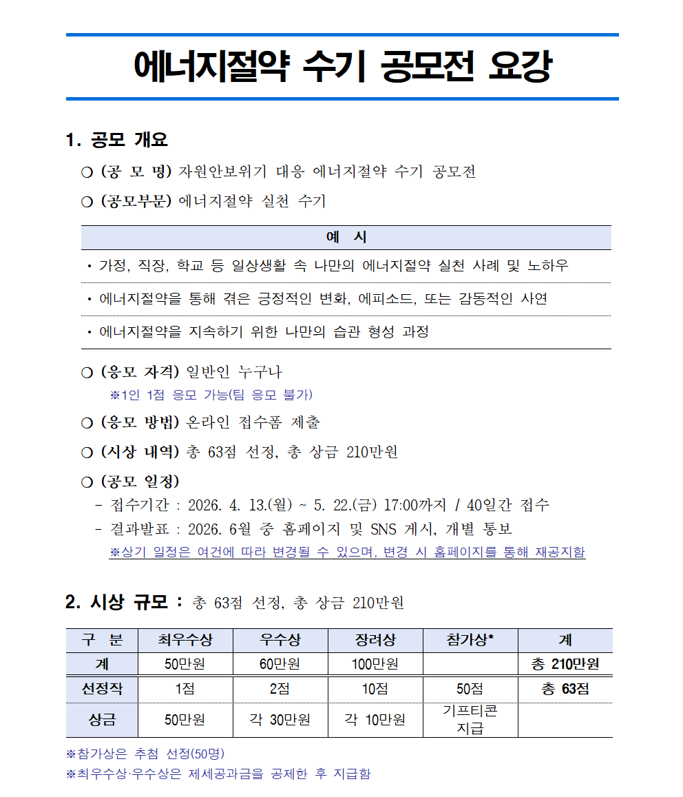 자원안보위기 대응 에너지 절약 수기 공모전