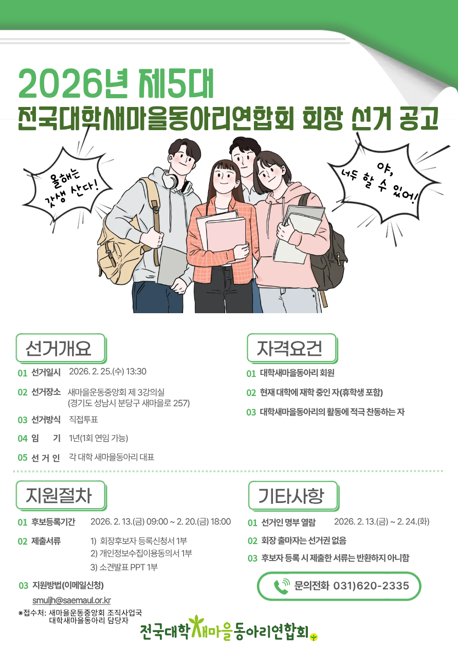 전국대학새마을동아리연합회 제5대 회장 선거 공고(정기총회)